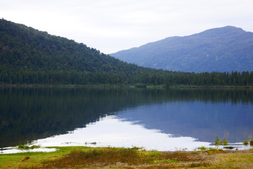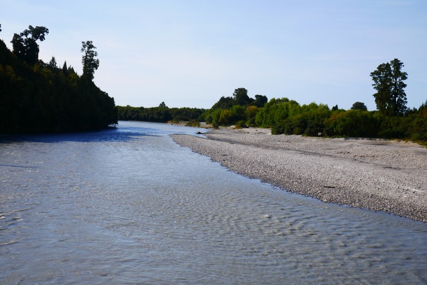 Es ist ein bizarres Bild. Im Hintergrund noch immer schneebedeckte Berge, davor tropischer Regenwald und Palmen. Diese Region soll die niederschlagreichste Gegend ganz Neuseelands sein. Heute ist hier einfach nur Sommer :-))