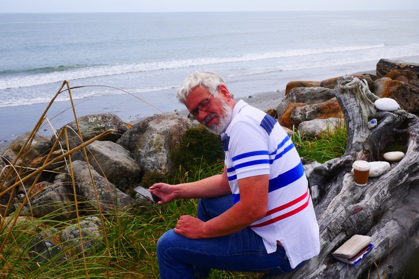 Wir geniessen die Fahrt entlang der Küste, unternehmen unsere üblichen Foto- und Food-Stops. Kommunikation mit der Aussenwelt ist hier schwierig, denn auf gut 100 Kilometer Strecke, gibt es lediglich in den wenigen Ortschaften ein mobiles Netz. Abgesehen von einer Kaffeebude, die auch Snacks verkauft. Und sogar mit „Free WiFi“ wirbt. Keine Ahnung, wie das funktioniert, aber es klappt! Zum Kaffee, den uns ein junges Mädchen aus Magdeburg serviert, die in Neuseeland Work&Travel macht, nutzen wir den Internet-Zugang um mit Robert Kontakt aufzunehmen und uns über den heutigen Übernachtungsplatz abzustimmen.