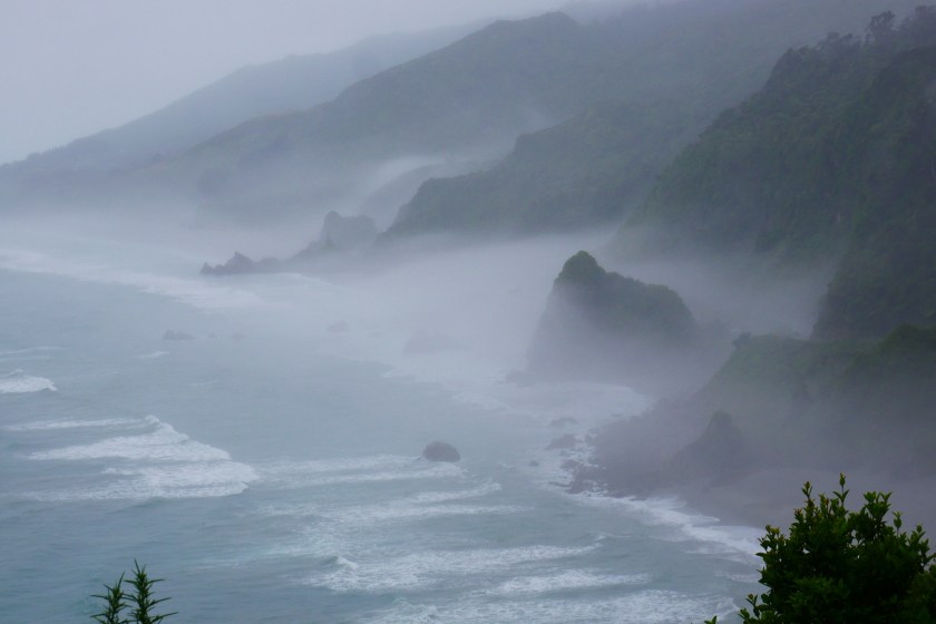 Kaum sind wir zurück im Auto wird das Wetter noch schlechter. Es regnet auf den nächsten 40 Kilometern in Strömen. Erst als wir abbiegen um durch die Berge zurück in den Osten der Insel zu fahren wird es besser.