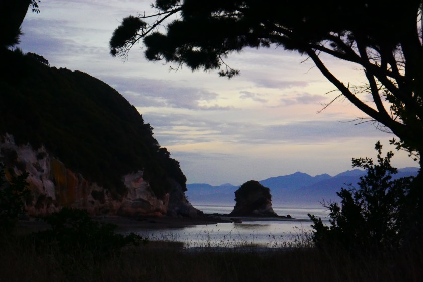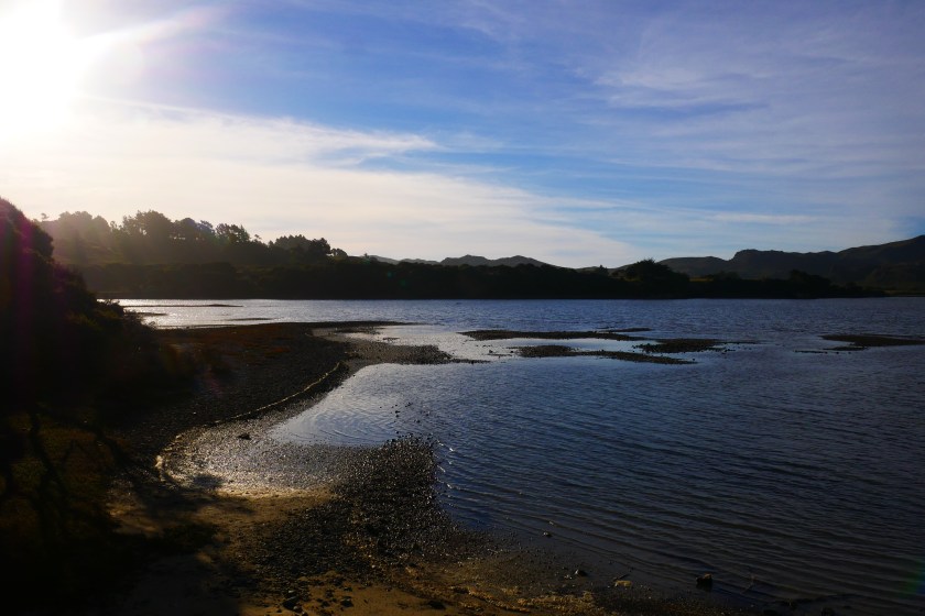 Nach dem kurzen Abstecher in die „Unterwelt“ zuckeln wir durch die Dörfchen der Golden Bay und erreichen letztlich am Nachmittag Puponga. Der Ort besteht aus 10 Häusern und einem Campingplatz, alles gelegen zwischen einem Kiesstrand und einem Fluss, der hier ins Meer fliesst.