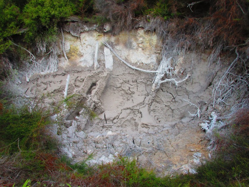 Es blubbert in den unterschiedlichsten Höhenlagen, manchmal klingt es als würde leise ein Kessel pfeifen, an anderen Ecken kommt einfach ein Rauschen aus der dampfenden Tiefe, oder es zischt wie ein Schnellkochtopf und aus den Schlammlöchern sprotzt es, wie wenn Griesbrei anfängt zu kochen. Und das alles auch bei Temperaturen, wie in einer betriebsamen Großküche.