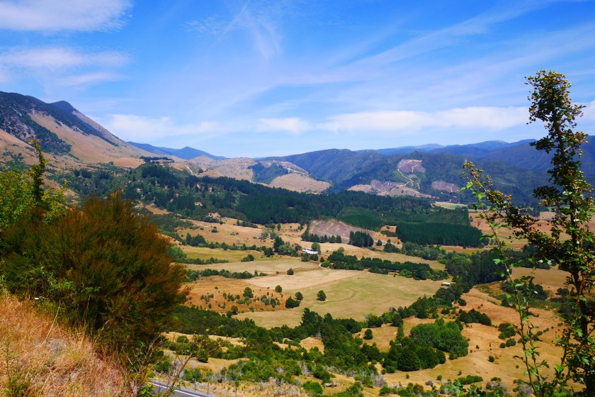Auf das Obstanbaugebiet folgt eine kargere Landschaft. Ebenso hügelig, aber weniger grün, ausgedehnte, aber leicht vertrocknete Steppen, auf denen mal wieder Kühe und Schafe weiden, bevor es dann wieder steiler und gebirgiger wird.