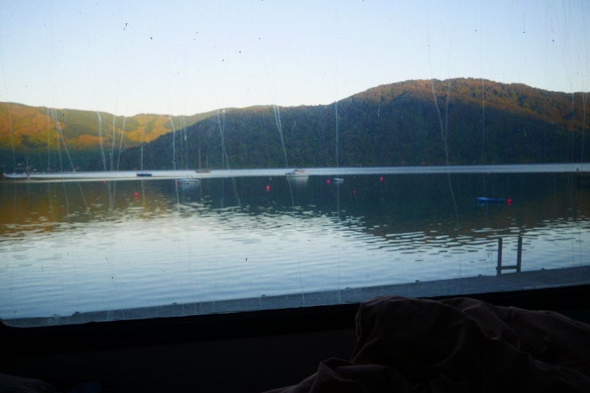 Zur Fähre sind es 16 Kilometer. Wir sind rechtzeitig unterwegs, kommen frühzeitig in Picton an und dürfen nach nur kurzer Wartezeit aufs Schiff fahren. Auf der dreistündigen Überfahrt ist besonders die Ausfahrt von Picton durch den Queen Charlotte Sound beeindruckend.