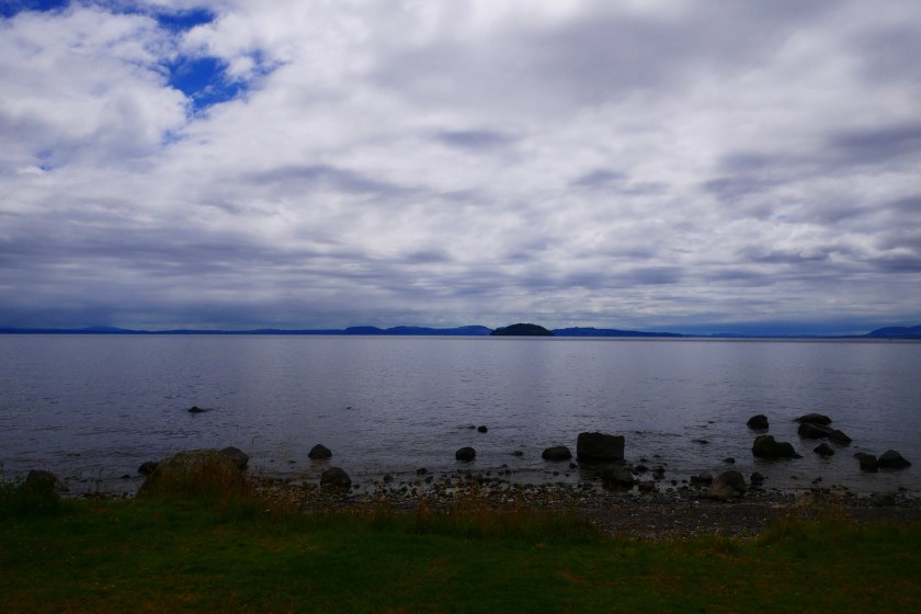 Das Thema Geothermie und Vulkane ist auf unserem Weg allgegenwärtig. Unsere erste Kafeepause machen wir am Lake Taupo, Neuseelands größtem See und natürlich das Ergebnis eines gigantischen Vulkanausbruchs.