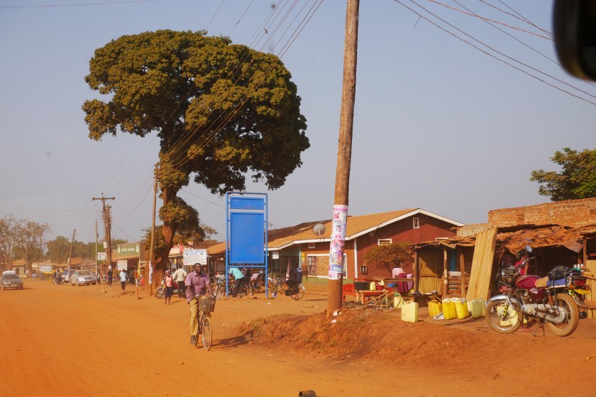Aufbruch in Murchison Falls. Unsere nächste Station ist Fort Portal, 350 Kilometer weiter im Süden und jeder brechen wir in aller Herrgottsfrühe auf, nämlich gegen sieben Uhr. Warum so zeitig, werde ich erst im Laufe des Tages verstehen, denn eigentlich ist heute kein weiterer Programmpunkt geplant und die Distanz erscheint mir nicht soooo weit. Schon nach wenigen Kilometern wird aber deutlich, warum Noel so viel Zeit eingeplant hat. Unsere gesamte Strecke führt, bis auf insgesamt vielleicht 30 Kilometer, über reine Sandpisten, auf der auch noch alle paar Meter gebaut wird, denn irgendwann soll hier eine ausgebaute Schnellstraße den Norden mit dem Süden verbinden. Schnell von A nach B, also komplette Fehlanzeige, stattdessen immer wieder kurzfristig Fenster zuschieben bzw. hochkurbeln, wenn uns ein größeres Fahrzeug entgegenkommt, um zu verhindern, dass der gemeine rote feine Staub sich im ganzen Auto ausbreitet.