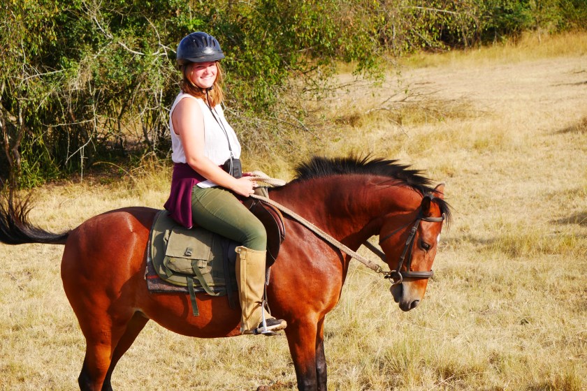Die ersten Zebragruppen galoppieren noch davon, dann aber treffen wir eine Familie, die stehenbleibt und sich ihre merkwürdigen ungestreiften Verwandten interessiert aus der Nähe ansieht. Unsere Pferde sind zwei ehemalige kenianische Rennpferde und ein im eigenen Stall gezogener Pony-Grosspferd-Mix. Alle drei sind absolut unerschrocken in diesem Gelände, selbst große Rinder- und sogar Büffelherden – bringen keinerlei Unruhe in unsere kleine Gruppe. Zum Abschluss unseres zweistündigen Ausflugs galoppieren wie eine schöne Strecke durch die Savanne und vergessen ausnahmsweise mal den aufmerksamen Blick in die Natur.